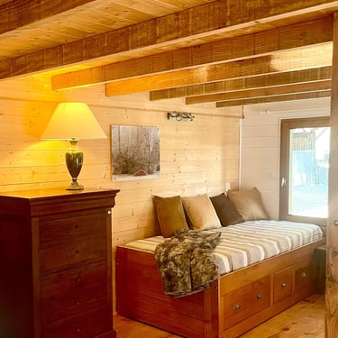 Caché entre les érables et les bambous, le gite en châtaigner peut accueillir jusqu'à 5 personnes.